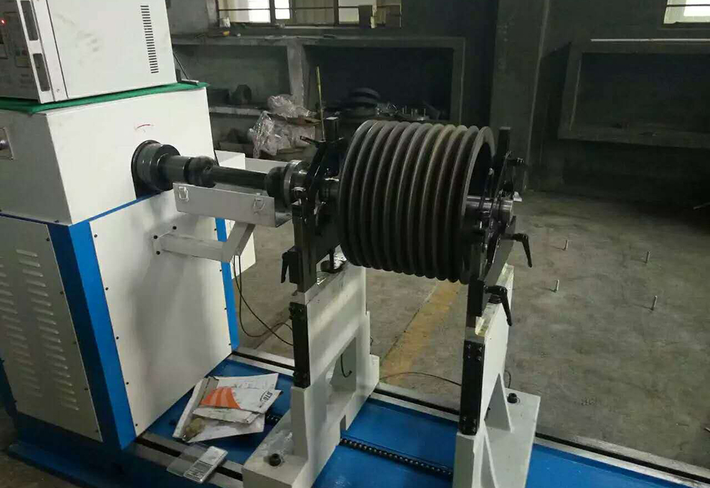 Pulley gimbal dynamic balancing machine.